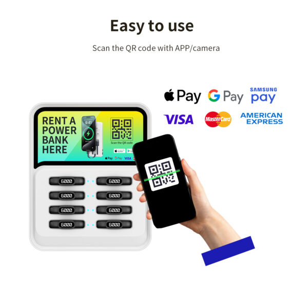 8-Slots Qr Scan Led Shared Power Bank Station